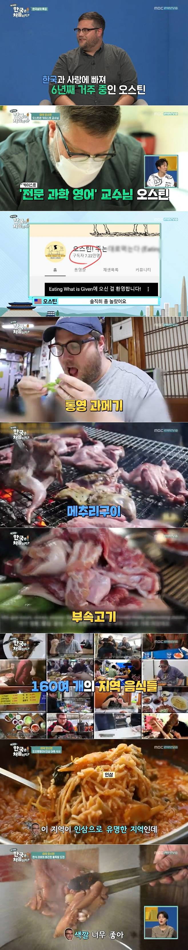 미국 출신 카이스트 교수 오스틴이 다채로운 한국 음식 '먹방'(먹는 방송)으로 MC 도경완, 이탈리아 출신 방송인 알베르토의 놀라움을 자아냈다.