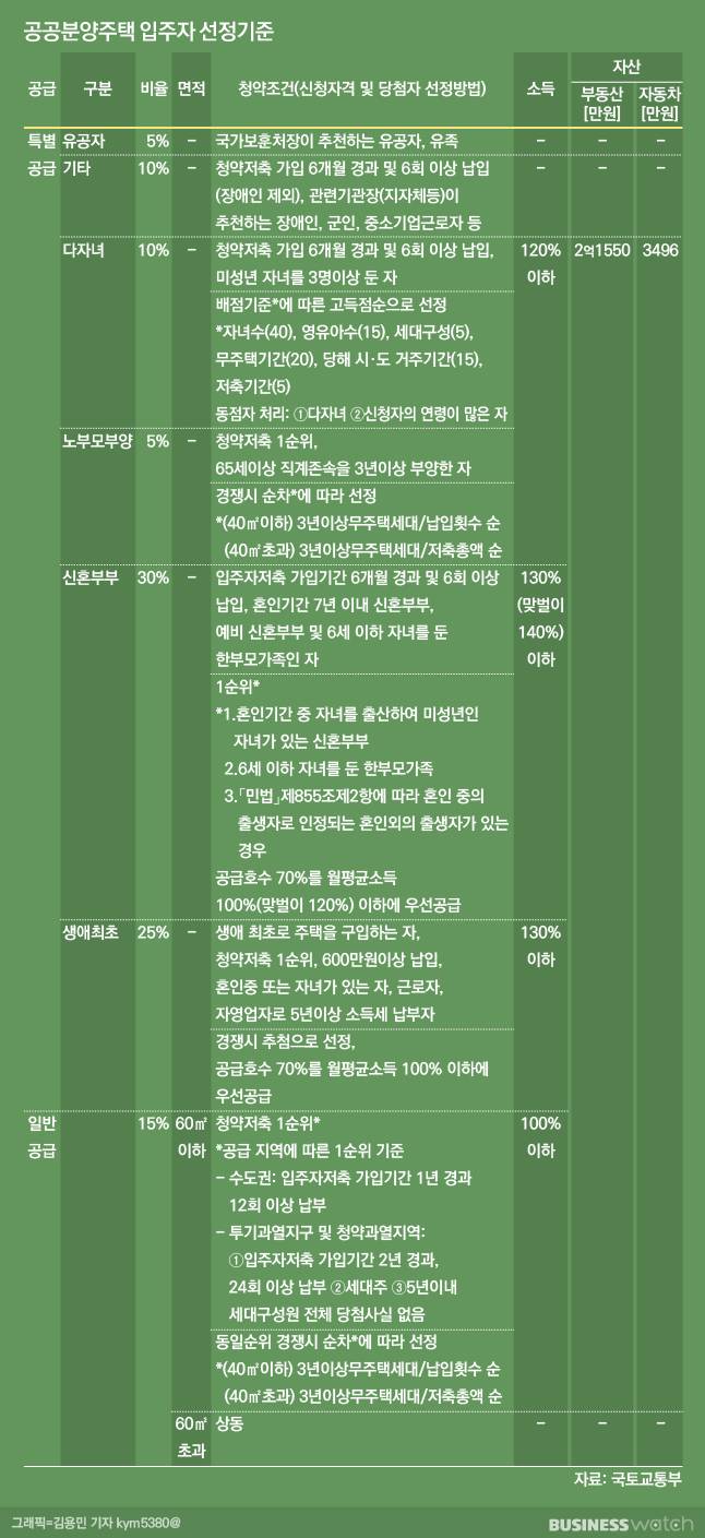 신혼부부 등 특별공급과 일반공급, 신혼희망타운의 소득 및 자산 기준 등을 꼼꼼히 살펴보고 입주자 선정기준 등을 확인해 전략적인 청약신청이 필요하다.