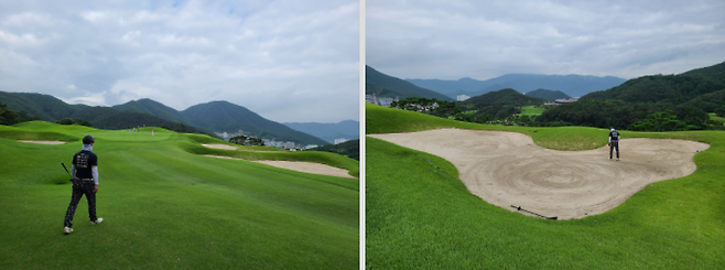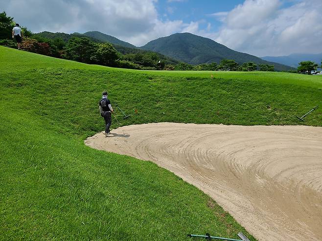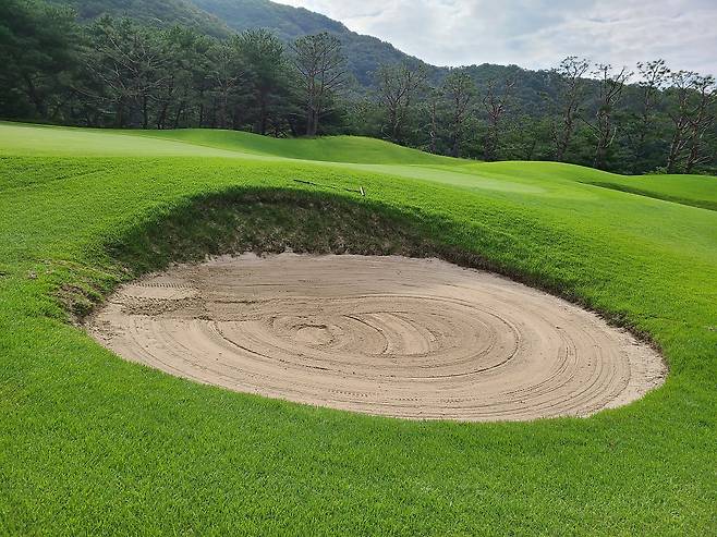 벙커 수는 많은 편입니다. 사진처럼 가끔 그린 주변에 턱이 상당히 높은 벙커도 있었고 사이즈도 꽤 큽니다. 모래도 젖었기 때문에 평소보다 탈출 난이도가 높았습니다.