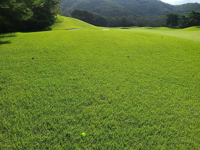 페어웨이 역시 대부분 잘 관리되어 있어 보이지만, 날씨 때문에 약간 잔디 길이가 높게 느껴졌습니다. 당일 플레이하는 동안, 코스 여기저기에서 부지런히 잔디 깎기를 돌리고 있더군요.