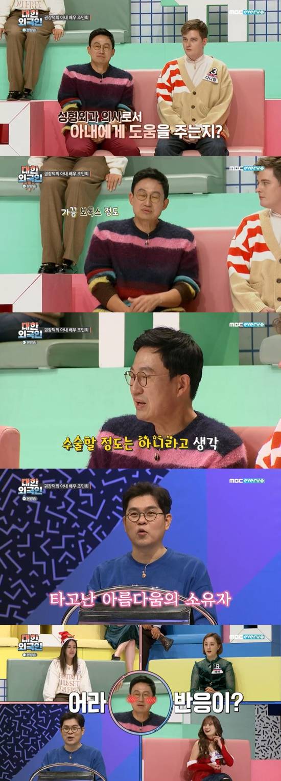 이날 MC 김용만은 권장덕에게 "아내인 배우 조민희에게 성형외과 의사로서 도움을 주나"라고 물었다.