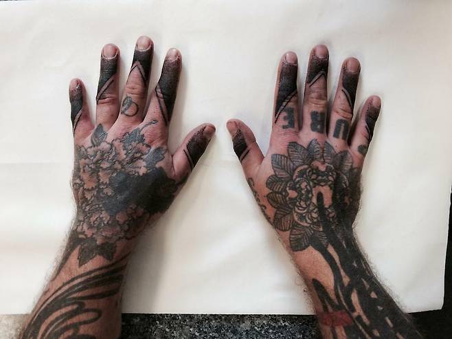 무한대 기호요. 무한대 기호가 요즘 유행이죠. 그리고 작은 화살도요. 보통 젊은 여성들이 갈비뼈 쪽에 그려달라고 해요. 마음에 드는 화살 그림을 들고 와요. 다 똑같은 웹사이트에서 보고 오는 거예요. 그런 작업은 보통 다른 타투이스트에게 맡겨요. 상관할 바는 아니지만 정체성을 드러낼 만한 그림을 그려야 한다고 생각하는데 정말 무한대 기호를 그리고 싶은지 묻고 싶어요. 과학자들도 무한대 개념을 이해 못 하는데 의뢰하는 젊은 여성들이 그 의미를 알 리가 없죠. 아, 혹시 그쪽도 무한대 기호를 새긴 건 아니죠?