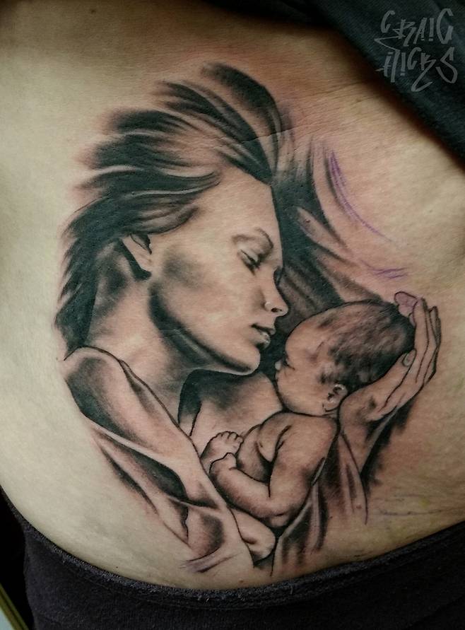 크레이그 힉스: 아기를 잃은 여성한테 시술해준 적이 있어요. 대화를 그다지 많이 나누진 않았죠. 자세한 걸 알 필요는 없으니까요. 배에 있는 흉터를 타투로 덮었어요. 흑백으로 작업했는데 정말 힘들었죠.
