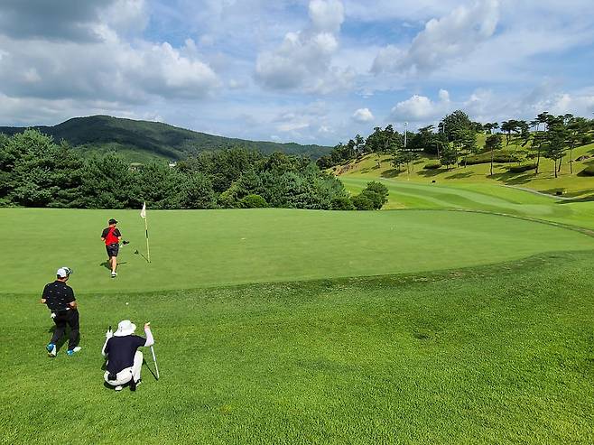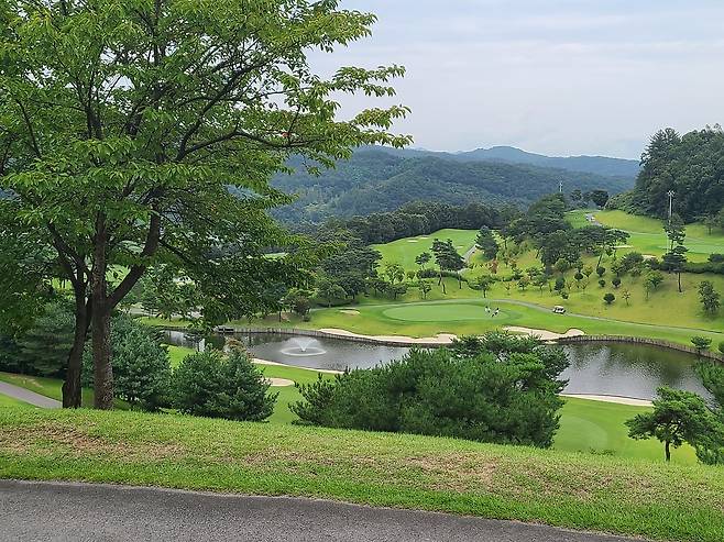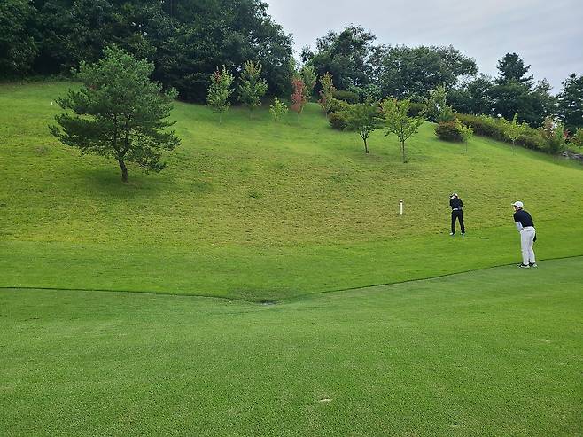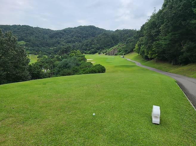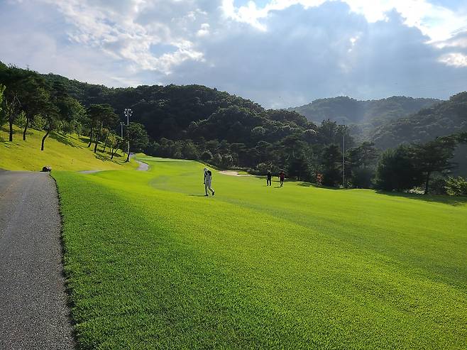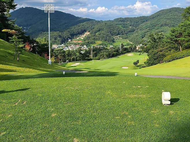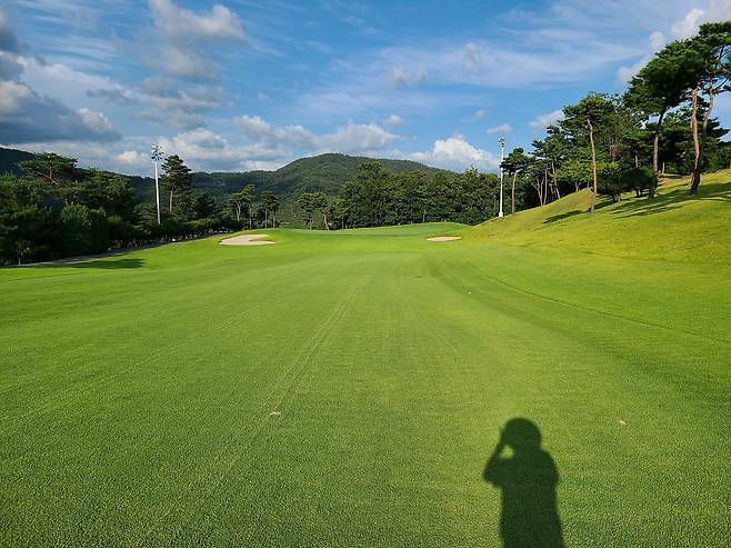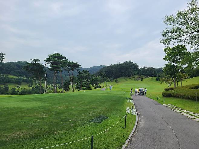 흔히 볼 수 있는 국내 골프장 첫홀 풍경.
