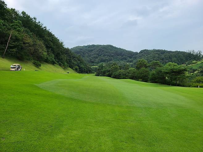페어웨이 잔디는 중지였고 관리도 좋은 편입니다. 비가 좀 내린 다음날이라 약간 공은 진흙이 묻어 가끔 공을 닦아야 했네요. 공은 잔디 위로 잘 올라서있었지만 잔디가 약간 억센 느낌으로 디봇이 깔끔하게 파여지지 않았네요.