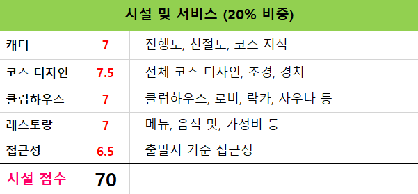 ▶ 캐디의 코스 설명, 운영 및 친절도: (7 /10점)