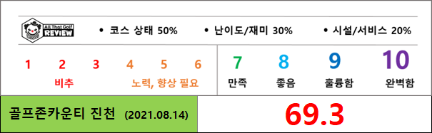 저렴한 가격과 우수한 서비스 및 코스 관리로 골퍼들을 모시겠다고 하네요. 그린 속도와 상태가 조금 더 빨랐으면 더 좋았을듯하지만, 큰 후회는 없을 골프장입니다. 요즘 주말 그린피가 하늘 높은 줄 모른다고도 해서 16만 원에 비교적 양호합니다만, 먼 거리도 고려하게 됩니다.