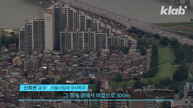 깎아 내려진 지붕 경사면에 커다랗게 쓰인 아파트 이름까지.