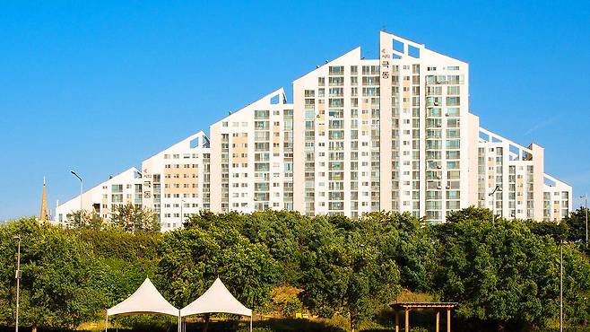 이런 삼각형 모양의 아파트가 탄생하게 된 것이죠.