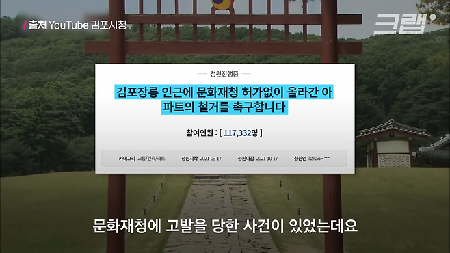 최근 조선 왕릉인 김포 장릉의 경관을 가린다는 이유로