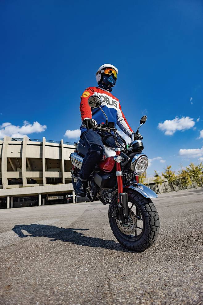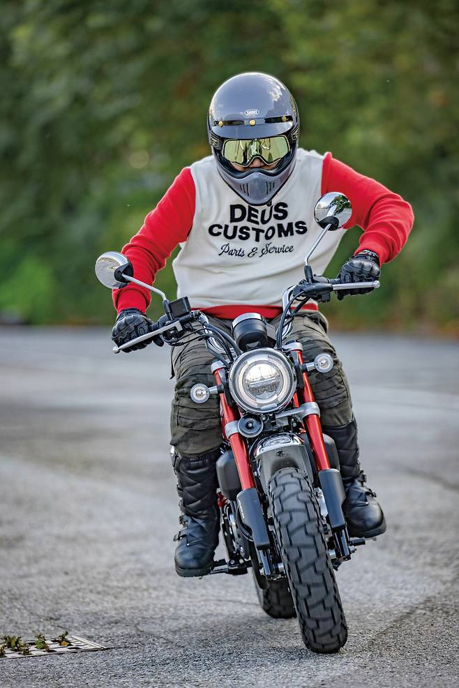 덕분에 스쿠터만 타본 여성라이더도 5분 만에 몽키125의 클러치에 적응해 타고 달릴 수 있었다. 그러니 지레 겁먹고 포기하지 말고 한번 도전해보라고 말하고 싶다. 전륜에 ABS를 기본으로 장착하고 있는 점도 초심자에게 추천해주기 좋은 포인트다.