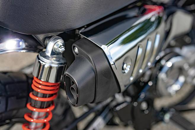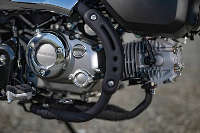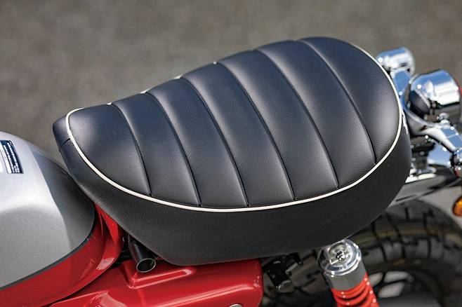 크기가 커졌다고는 해도 외형은 여전히 사랑스럽다. 그리고 페인팅 품질이나 차체의 완성도가 비교할 수 없을 만큼 좋아졌다. 곳곳에 쓰이고 있는 부품의 품질도 좋다. 게다가 LED헤드라이트와 크롬파츠들 덕분에 기존 몽키시리즈 한정판과 비교해도 좋아 보일 정도다. 특히 금속 재질을 효과적으로 배치해 단단하면서도 고급스럽게 마무리 된 점이 좋다. 외형에서 아쉬운 점은 탱크 아래 위치한 거대한 에어클리너 박스다. MSX125에서는 슈라우드로 감추고 있었는데 몽키에서는 그대로 드러났기 때문이다. 반짝반짝한 금속 파츠들 사이에 검고 큼직한 플라스틱덩어리가 툭 붙어있으니 영 어색해 보인다. 그 이외에는 디자인 요소요소가 마음에 쏙 든다.