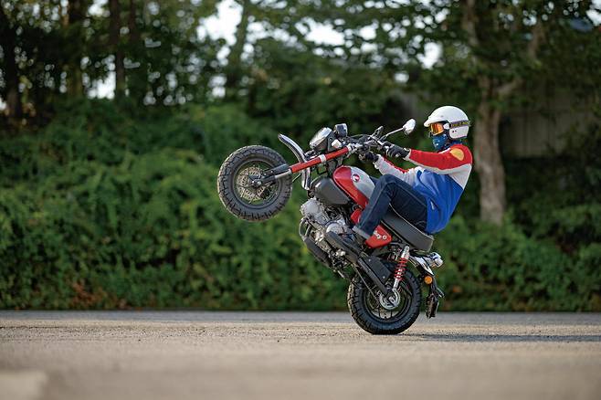 덩치가 커지면서 기존의 몽키보다 1.5배는 무거워졌지만 힘은 두 배가 넘게 좋아졌으니 주행의 재미는 비교불가다. 솔직히 말해서 타보기 전에 125cc에서 이런 재미를 느끼게 될 줄은 몰랐다. 엔진이 더 활발하게 돌아가면 더 재밌겠지만 부드러운 감각의 엔진이 친절한 몽키의 이미지와 딱 맞아서 좋았다. 놀이감각 역시 더 커졌다. 시트 위치상 뒷바퀴 위에 올라탄 것과 같다보니 클러치만 통 튕겨도 프런트 휠이 공중으로 떠오르고 조향각이 넓어 아주 짧게 방향을 바꿀 수 있다. ABS는 리어에 적용되지 않는데 초심자에게는 아쉬운 부분이라고 할 수 있겠지만 개인적으로는 일부러라도 리어 브레이크는 ABS개입을 꺼두고 타는 편이라 오히려 마음에 드는 세팅이었다.