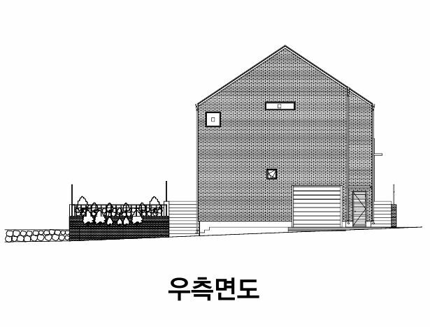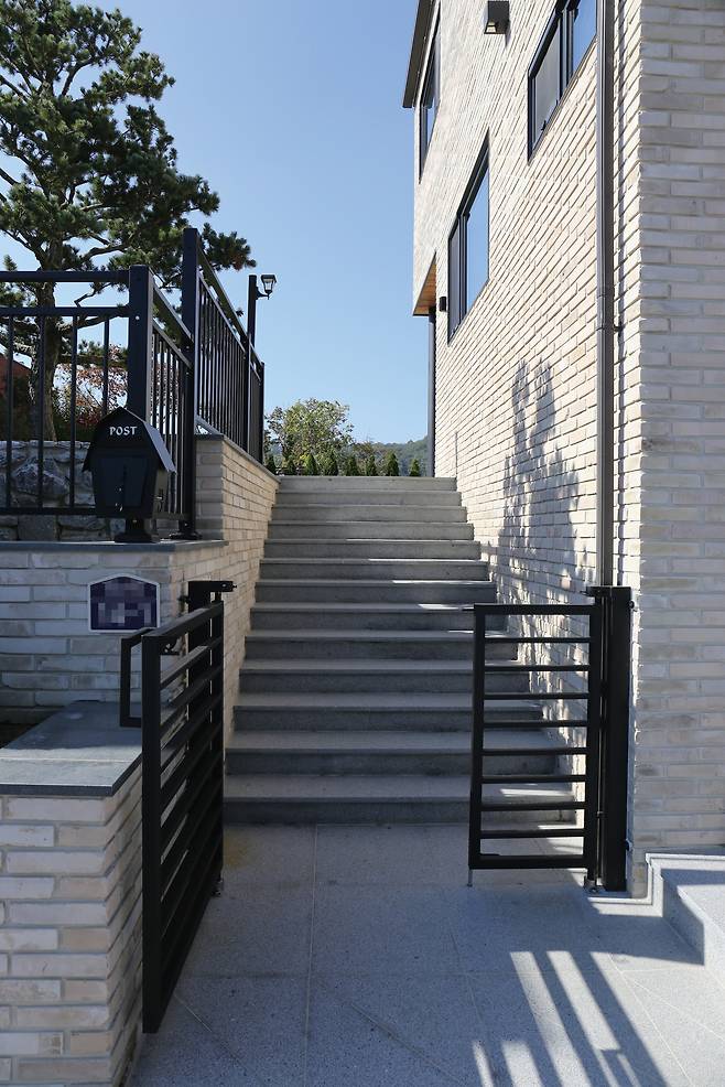 하랑재의 택지는 양쪽의 인접대지경계선을 기준으로 동남향을 바라보는 정방형에 가까운 비교적 넓은 부지로 경사가 있는 지형이었다. 설계를 시작할 초반에는 세종시 건축법상 옹벽에 대한 규제가 있었는데 설계 진행 중이던 지난 11월에 규제가 완화되어 설계 변경을 할 수 있게 됐다. 그렇게 옹벽을 쌓으며 대지의 성토로 인해 생긴 도로와의 높이 차이를 이용해 옥내주차장 자리를 마련했고 옥내로 진입하는 계단을 설치했다. 건축주가 계획했던 입주시기보다 두 달 정도 밀리게 되었지만 옥내주차장을 갖게 돼 건축주에게는 참 다행스러운 일이라고 말한다.