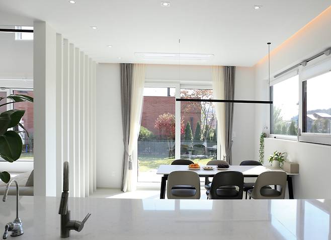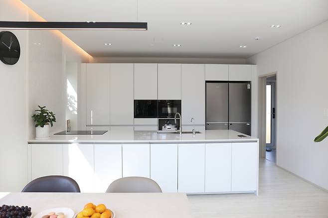 “콩 볶듯이 했어요. 4월 말 쯤부터 주말마다 타운하우스와 집 지을 땅을 보러 다녔어요. 그러다 6월 운 좋게 지금의 택지를 만나 바로 매입했고, 택지를 알아보러 다니면서 자연스럽게 여러 집을 구경했는데, 마음에 드는 집이 브랜드하우징과 건축사사무소 카이에서 지은 집이더라고요. 결정하기 전에는 건축사와 시공사가 지은 주택 여덟 군데 이상은 둘러봤어요.”