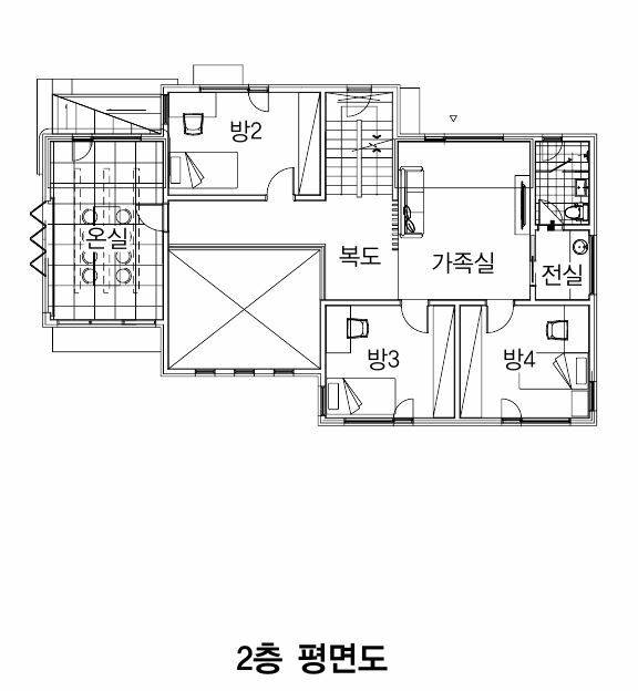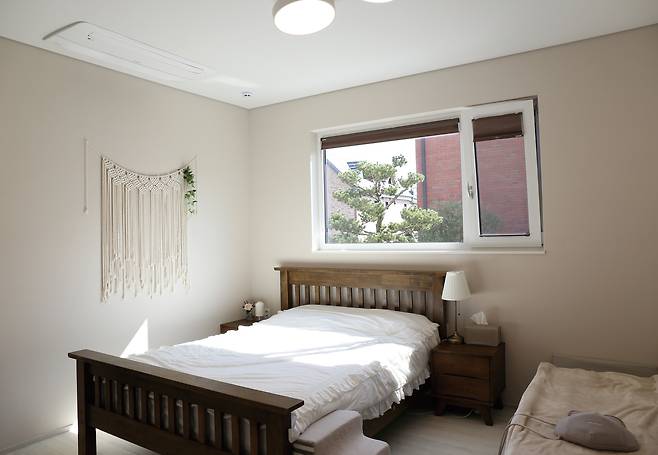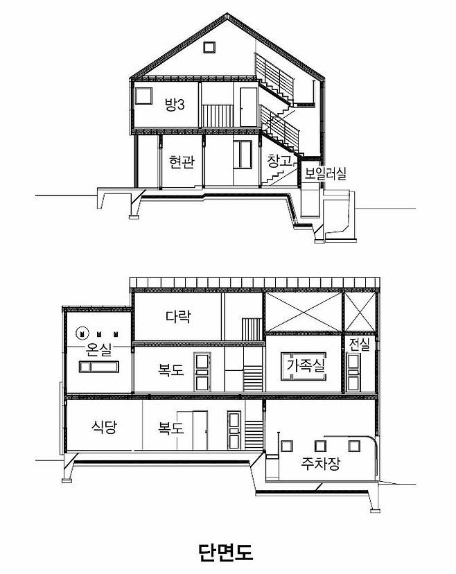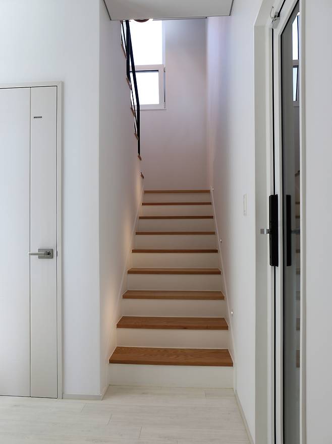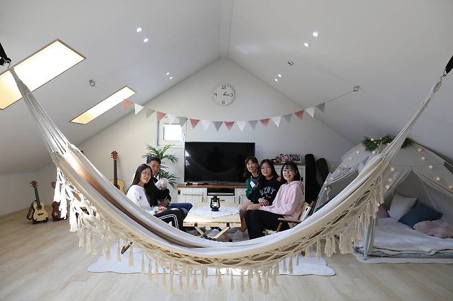 고등학생인 첫째, 중학생인 둘째, 초등 6학년인 막내 모두 예민할 수 있는 사춘기이기에 아이들을 고려해 부부와 아이들의 공간을 나눠 설계했다. 1층에 안방을, 2층에는 아이들 방을 배치했고 부부 만의 공간과 아이들의 공간을 분리하면서도 언제든 소통을 원활하게 할 수 있게 오픈 천장 거실 구조를 택했다. 그리고 가족끼리 함께 휴식을 즐길 수 있는 온실과 다락을 배치했다. 부부는 2층 실개천 뷰를 누릴 수 있는 파티 룸인 온실을, 아이들은 악기 연주를 하며 노래할 수 있는 다락방을 가장 좋아한다.