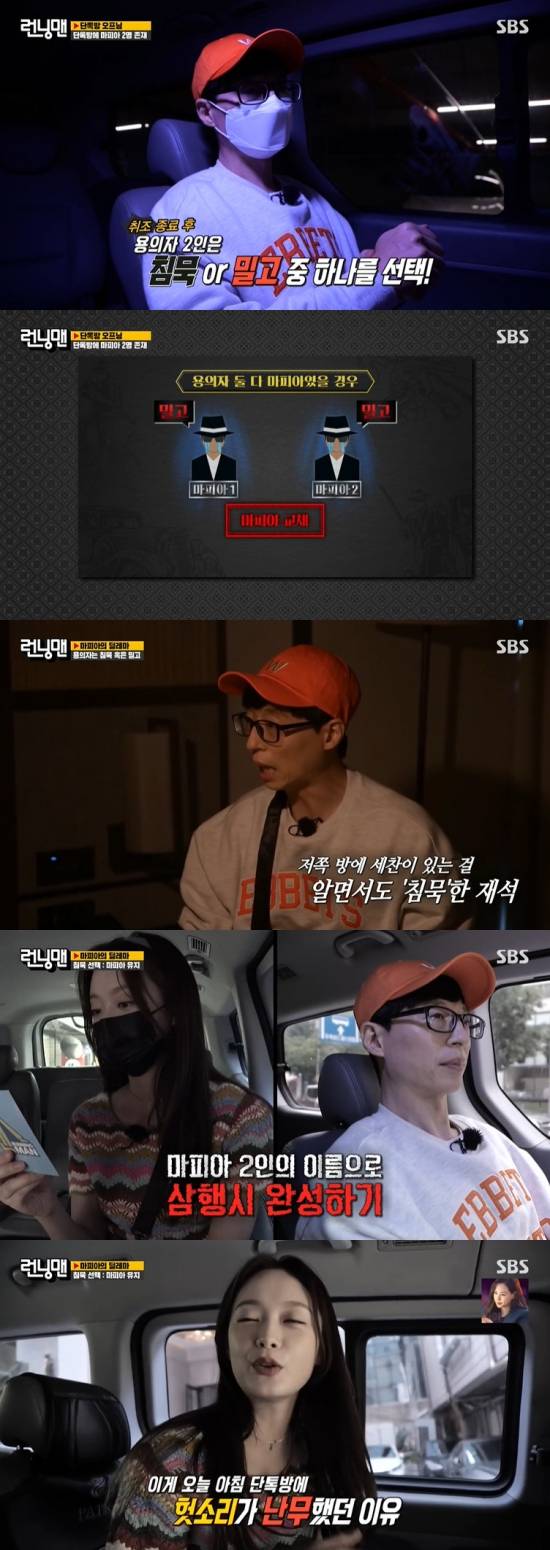 12일 방송된 SBS '런닝맨'에서는 '마피아의 딜레마' 레이스로 꾸며진 가운데 1차 마피아인 유재석과 전소민이 서로를 밀고한 장면이 전파를 탔다.