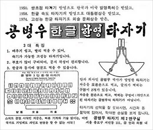 한글 초·중·종성으로 글자를 조합하는 창제원리에 따른 세벌식 타자기는 1949년에 전국과학전람회에 출품돼 국회의장상을 수상했다. 이 타자기는 정부에서 공문서 작성에 쓰게 되면서 일반인들에게도 널리 쓰이게 됐다.