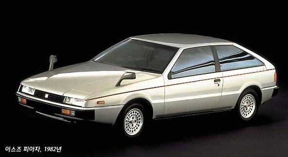 이스즈의 피아자는 테일 게이트를 가진 해치백 차체 구조에 뒷부분이 크게 경사진 형태의 데크가 없는 패스트 백 형태이고, 단지 차체의 측면에 그어진 캐릭터 라인이 쐐기 이미지인 ‘쐐기형 스타일’인 것을 발견 할 수 있다. 그야말로 역동적인 이미지를 부여하기 위한 스타일적 도구로써 쐐기의 이미지가 쓰인 것이다.