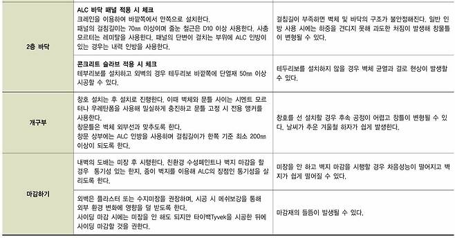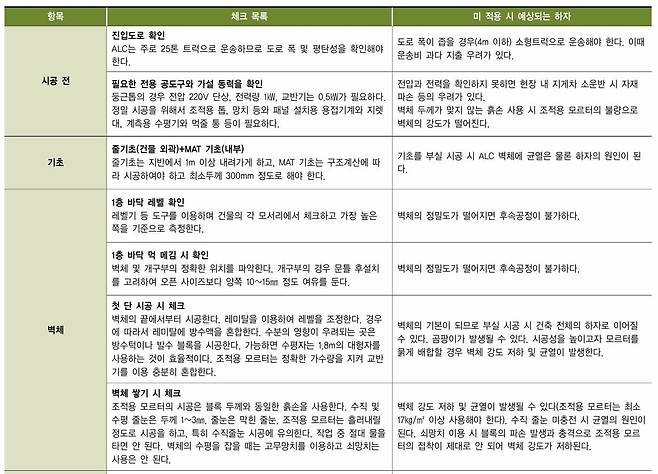 친환경 ALC 주택 시공 시 체크 리스트