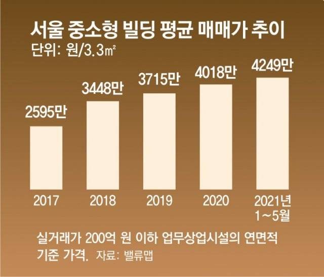 주택에 대한 잇따른 규제로 지난해부터 중소형 빌딩을 사려는 수요가 몰리면서 가격이 급등한 영향도 있다. 밸류맵에 따르면 올해 서울 중소형 빌딩(매매가 200억 원 이하)의 평균 매매가는 3.3㎡당 4249만 원으로 3년 전(2595만 원)보다 63.7% 올랐다. 건물주들이 이전보다 웃돈을 주고 매입했지만 수익성이 기대에 미치지 못하게 되자 타개책으로 공유오피스 유치로 눈을 돌리는 것이다.
