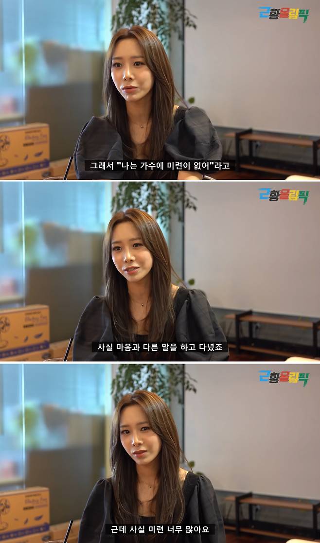제가 그때 회사를 나와서 고민을 굉장히 많이 했어요. 제가 객관적으로 보기에는 저를 받아줄 회사가 없을 것 같았어요. 제가 너무 애매한 거예요. 그때 마침 좋은 기회로 회사를 들어가게 돼서 뮤지컬을 시작하게 됐죠. 처음으로 제가 일한 것에 대해서 대가를 받고 하는 거였어요. 그때는 가수로서는 빛이 보이지 않았어요. 주위에서 "아깝다", "왜 가수 더 안 해?","왜 전향을 그렇게 바로 해버렸어?" 이런 이야기를 너무 많이 하니까 사실 저한테는 희망 고문 당하는 느낌이었어요. 그래서 "가수에 미련이 없다"라고 마음과 다른 말을 하고 다녔죠. 근데 미련이 너무 많이 남아요.