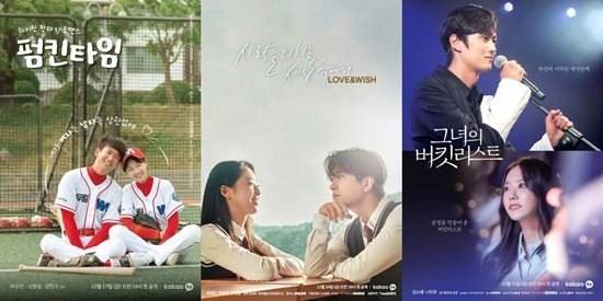 카카오엔터테인먼트는 오는 12월 인기 웹툰을 원작으로 한 로맨스 드라마 '펌킨타임', '러브 앤 위시', '그녀의 버킷리스트' 등 3개 작품을 카카오TV에서 첫 공개한다고 밝혔다.