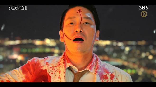 27일 오후 방송된 SBS '펜트하우스3'에서는 주단태(엄기준 분)가 심수련(이지아 분)이 쏜 총에 맞고 추락했다.