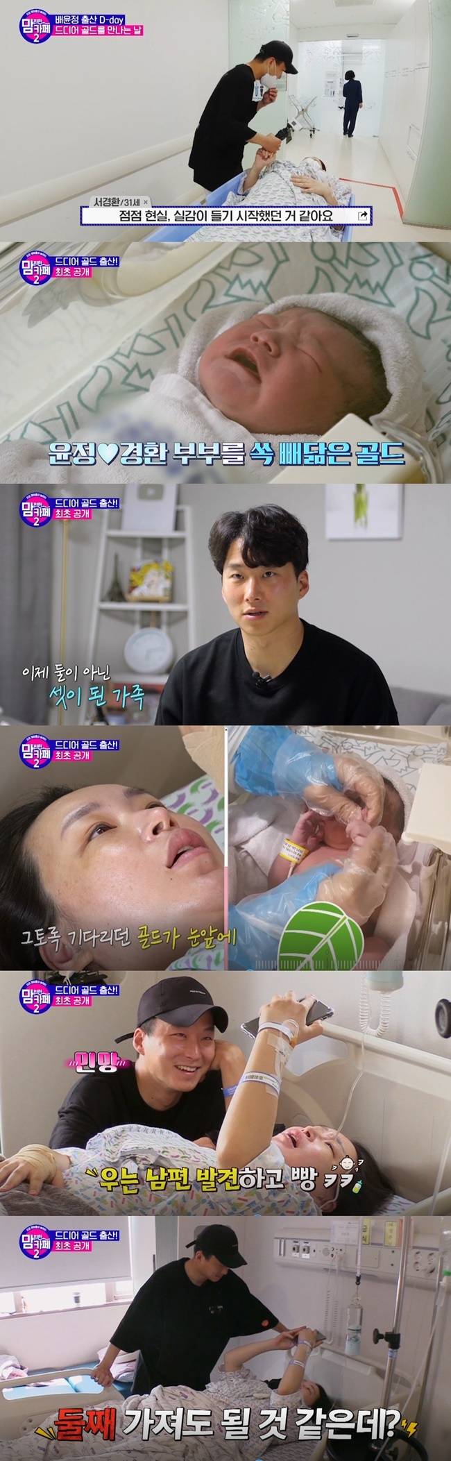 드디어 출산 당일. 세상에 나온 골드를 본 서경환은 감격에 겨운 얼굴을 보였다. 2시간 뒤 배윤정도 다시 입원실로 복귀했다. 서경환은 "아기 태어났을 때 다 똑같이 생겼다고 생각했거든? 안 똑같아. 내 얼굴도 조금 있어"라고 말했고, 배윤정은 "쭈글쭈글하지 않아?"라고 물었다.서경환은 "하나도 안 쭈글쭈글해"라며 영상을 보여줬다.