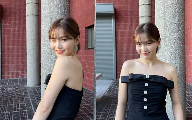 사진에는 효정이 오프숄더 블랙 드레스를 입고 포즈를 취하고 있는 모습이 담겨있다. 효정은 가녀린 어깨선과 미소가 돋보이는 상큼한 비주얼로 심쿵을 유발하고 있다. 윙크를 하며 과즙미를 더하는 효정의 비타민 매력이 눈길을 사로잡는다.
