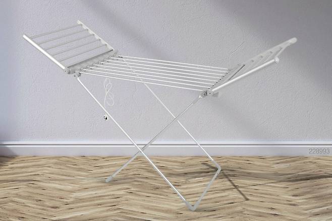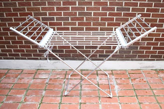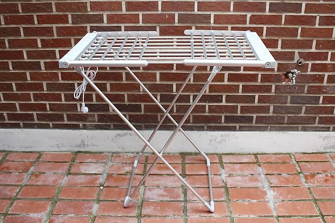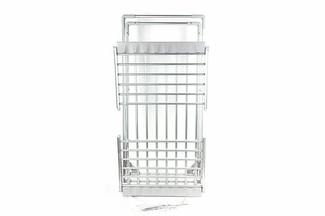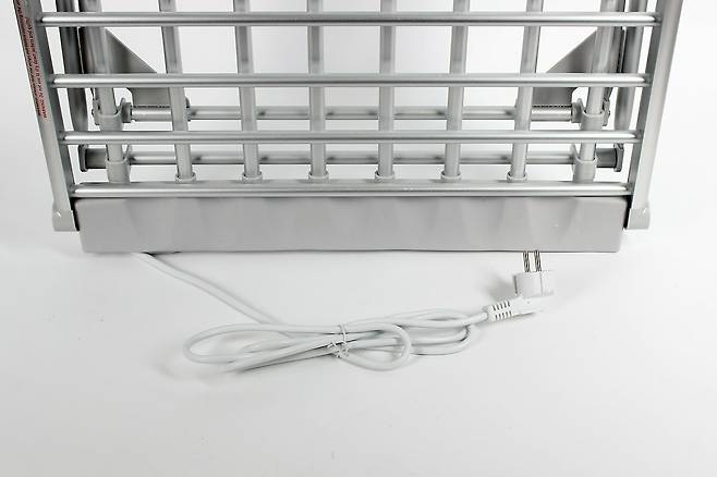 카스 히팅 온열 빨래 건조대의 외형은 일반적인 빨래 건조대와 크게 다르지 않다. 접이식 구조에 은색 금속 소재 봉과 일부 플라스틱으로 이루어진 본체는 3㎏이 채 되지 않은 가벼운 무게로 누구나 쉽게 들 수 있다.