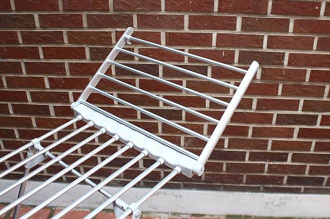 설치했을 때 수평이 유지되는 가운데 부분은 봉이 가로 방향으로 되어있으며, 양쪽 날개 부분은 약간 기울어지게 설치되기 때문에 세탁물이 밀려 내려가는 것을 방지하기 위해 가운데 부분의 봉과 직각 방향으로 건조봉이 설치되어 있다.