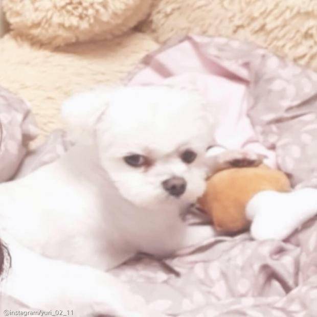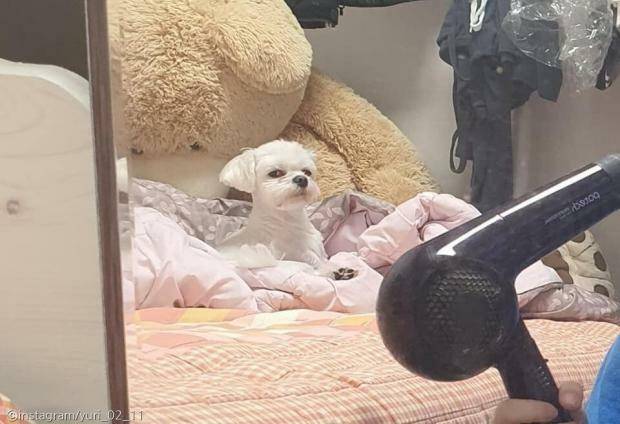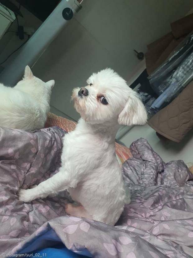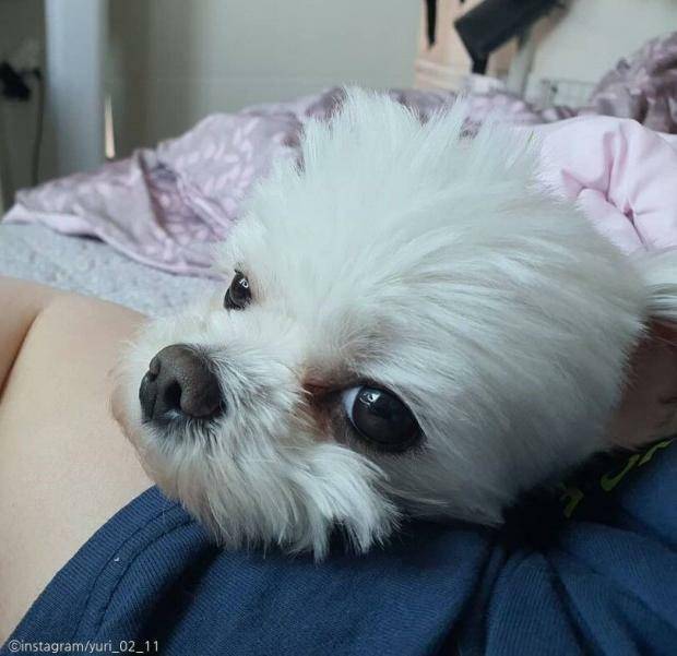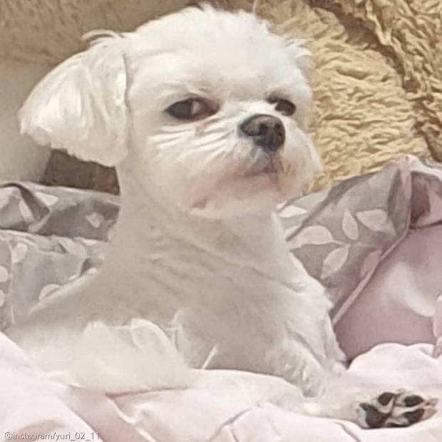 얼마 전 유리 씨가 SNS에 올린 말티즈 '쫑이'. 쫑이는 고개만 살짝 돌린채 곁눈질로 유리 씨를 향해 무언의 질타를 날리는 듯한 모습을 보여주고 있다.