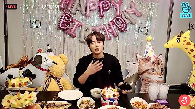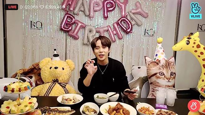 그룹 에이티즈(ATEEZ) 종호가 11일 오후 V라이브에서 생일 D-1 기념 방송 '곰돌이 생일 이브'를 진행했다.