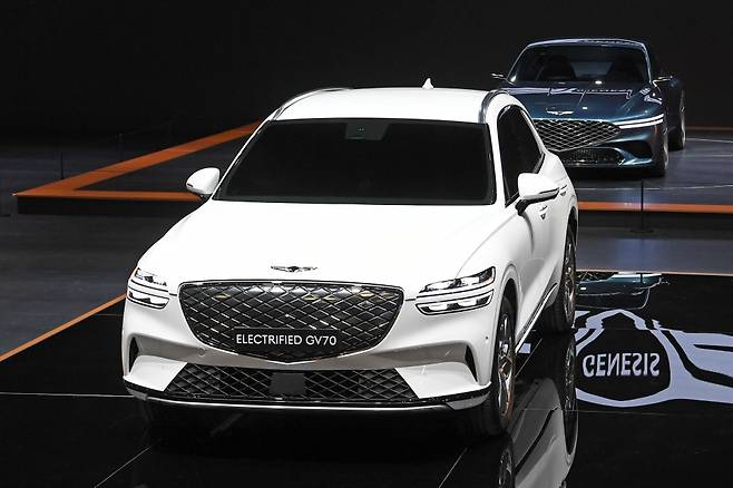 제네시스 브랜드의 세번째 전기차 GV70 전동화모델은 GV60의 최상위 모델에 맞먹는 성능을 낼 전망이다.