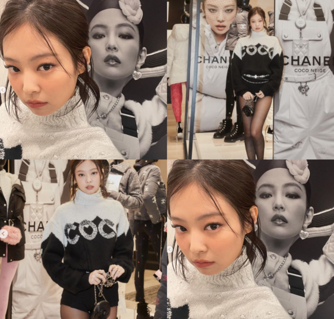 공개된 사진 속에서 제니는 자신이 모델로 활동 중인 명픔 브랜드 '샤넬' 매장 앞에서 포즈를 취하고 있는 모습. 독보적인 유니크한 매력이 돋보이는 비주얼로 팬들을 또 한 번 감탄하게 했다.