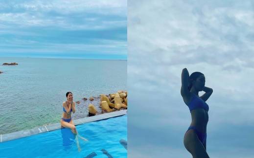 솔라는 파란색 계열의 비키니 수영복을 착용한 채 군살 없는 보디라인을 자랑했다. 최근 KBS 2TV '사장님 귀는 당나귀 귀'에 출연한 그는 양치승 관장과 함께 한 헬스 잡지 표지 모델에 도전하기 위해 약 두 달간 혹독한 식단과 운동을 병행한 것으로 알려졌다.