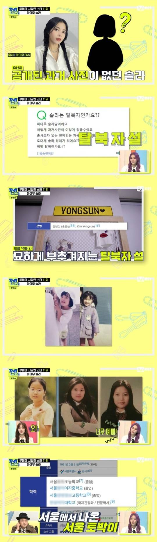 마마무 솔라의 탈북자 루머를 잠재운 과거사진이 공개됐다.