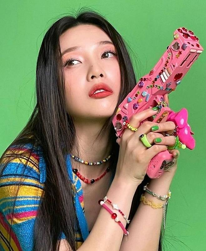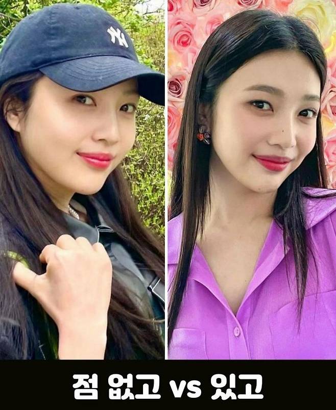 '미인 점'을 찍은 조이는 진한 립 컬러나