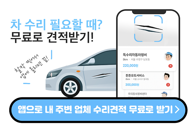 사용방법은 간단합니다. 앱을 통해서 간단히 훼손 부위의 사진을 올리기만 하면 무료로 내 주변 업체의 여러 견적서를 받아보실 수 있는데요.