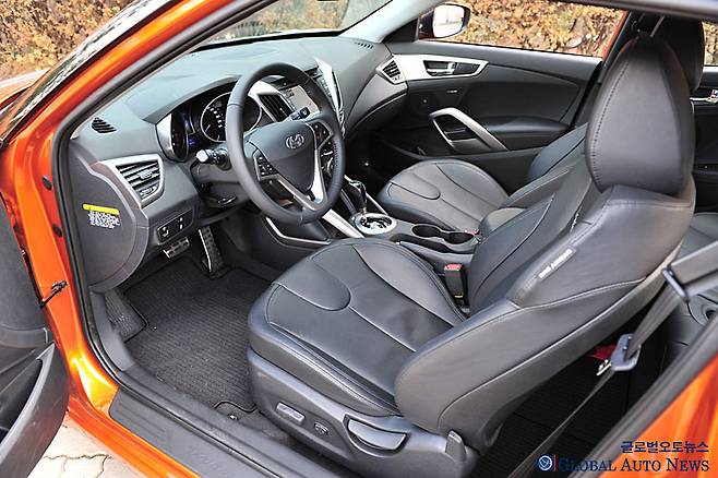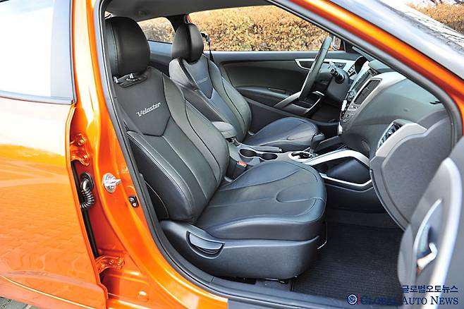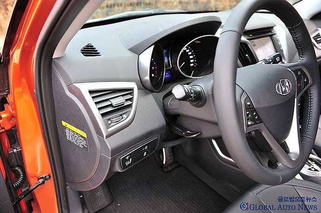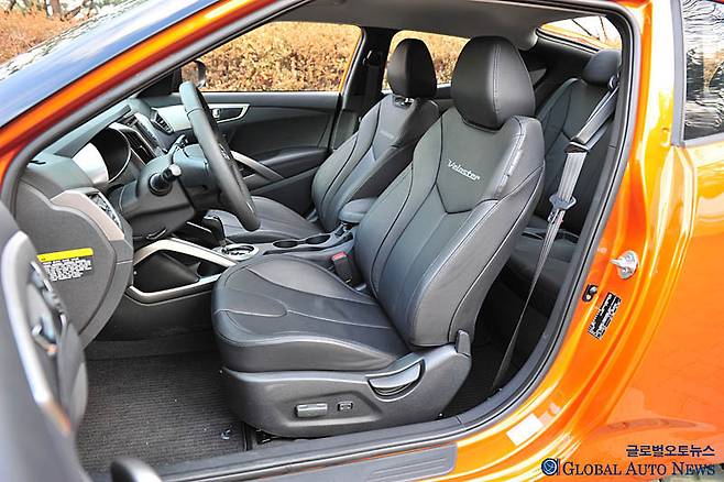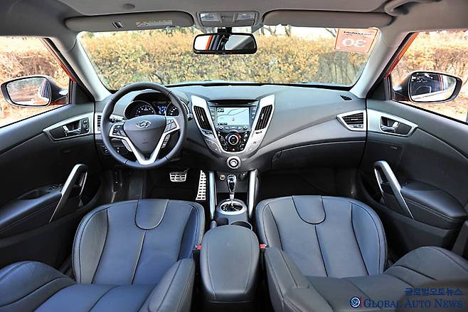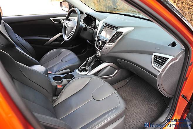 벨로스터도 센터 페시아를 감싸는 에쿠스 후드 엠블럼인 플라잉 레이디를 형상화한 트림이 분위기를 주도하고 있다. 대시보드 부분의 질감도 아주 좋다. 다만 글로브 박스 위쪽에는 약간 떨어지는 재질을 사용한 것이 거슬린다. 맨 위쪽에 7인치 DMB 내비게이션 모니터가 중심을 잡고 그 아래 에어컨 컨트롤 패널 등을 설계하는 공식과 함께 이제는 그래픽이 달라도 현대자동차라는 것을 금방 느낄 수 있을 정도로 자리잡았다. 그것이 주는 것은 안정감이다. 이 부분에서도 이제는 나름대로 완성된 모습을 보여 주고 있다.