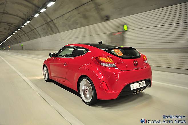 다시 오른 발에 힘을 주면 165km/h에서 5단으로 올라간다. 아반떼 MD가 그렇듯이 이 때부터는 숨을 고르며 속도계의 바늘을 끌어 올린다. 아반떼 MD에서는 그것이 불만이 없었는데 벨로스터에서는 약간 아쉽다. 투스카니 후속 모델로 스포츠성이 강화될 것이라는 기대 때문일 것이다 패밀리카로서는 넘치는 반응이라고 할 수 있겠지만 스포츠 패션카까지만의 특성이라도 가졌으면 좋을 것 같다는 생각을 해 본다.