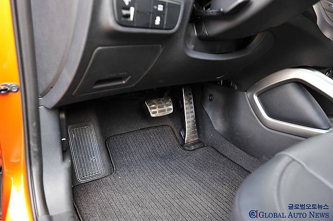 틸트 & 텔레스코픽 기능의 3스코픽 스티어링 휠에도 T자형 메탈 트림 처리가 주도하고 있다. 그 안으로 보이는 계기판은 좌우 분리형으로 된 원통형 클러스터가 스포티한 감각을 살리고 있다. 가운데 온보드 컴퓨터 디스플레이창과 함께 간결하면서도 임팩트가 있다. 좌우 도어 패널 부분에도 돌출형 핸들을 설계하는 등 ‘튀기 위한’ 노력(?)이 보인다. 다만 오디오 고음 스피커인 트위터의 위치가 A필러가 아닌 도어 핸들 부분에 설계 있다. 기능성보다는 디자인을 우선한 결과다.