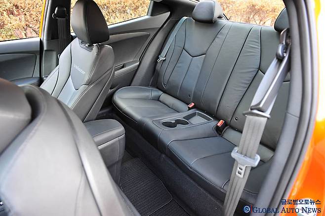 시트는 4인승. 당연히 프론트 시트 위주의 설계다. 퍼스널 쿠페라는 성격인 것이다. 전동으로 조절하는 것은 어쩔수 없는 시대적인 선택. 착좌감이 약간은 하드한 쪽이다. 시트 포인트는 i30와 같다. 아니 다르지 않다고 표현하는 것이 더 좋을 것 같다. 다르기를 기대했다는 얘기이다. 그린 하우스가 넓지 않은데도 앞좌석에 앉으면 감싸인 듯한 느낌은 부족하다. 이런 장르의 모델들은 시야가 부족해도 조금은 독립적인 느낌이 필요하다.