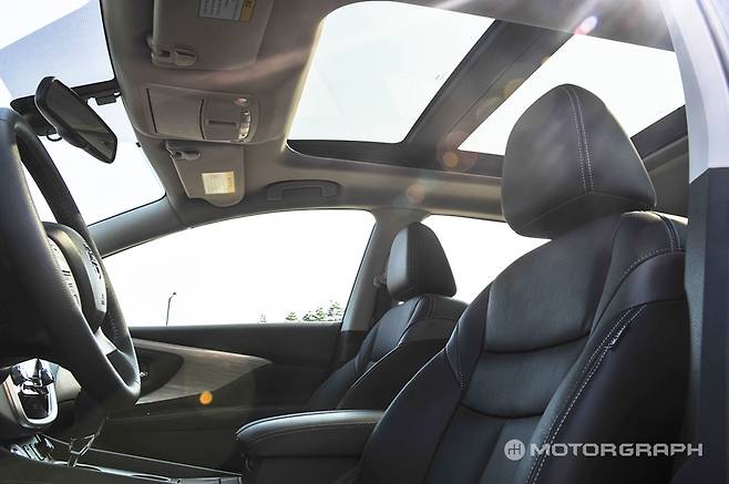 더욱이 닛산의 시트는 투박한 생김새와 다르게 월등한 안락함을 제공한다. 그동안 닛산은 NASA의 연구를 참고해 개발한 ‘저중력 시트’를 1열 시트에 적용했는데, 무라노는 최초로 전좌석이 저중력 시트로 구성됐다. 덕분에 2열 시트의 거주성은 비약적으로 높아졌다. 파노라마 선루프와 뒷좌석 USB 포트 등이 마련돼 편의성도 강조됐다.
