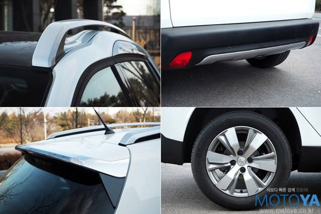 디테일에서는 번쩍이는 크롬 장식들이 가장 먼저 눈에 띈다. 푸조의 모델들 중에서 이토록 크롬 장식을 많이 쓴 차가 또 있을까? 라디에이터 그릴을 시작으로, 윈도 라인, 도어 하단, 안개등 주변, 리어 스포일러에 크롬 장식을 삽입했으며, 심지어 사이드 미러 커버는 통째로 크롬을 입혔다. 여기에 범퍼 하단에 둘러져 있는 반짝이는 스키드 플레이트와 루프랙에 이르면 다소 현란해 보이기까지 한다. 기함인 508보다도 크롬 장식이 많아 보일 정도다. 하지만, 지나치게 과장되어 있지 않은 느낌을 주며, 재치 있고 자연스럽게 녹아 든 느낌을 준다.