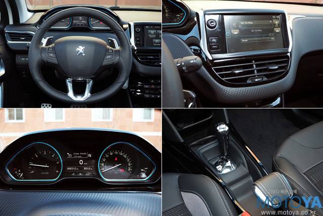 실내 역시 전년도와 다른 점은 발견할 수 없다. 형제차인 208과 대부분이 유사한 대시보드 둘레가 그대로다. 간결하면서도 입체적으로 연결된 느낌의 인테리어 분위기는 물론, 컴팩트한 스티어링 휠과 헤드-업 인스트루먼트 패널, 그리고 애프터 마켓의 내비게이션 시스템을 연상케 하는 중앙 디스플레이는 여전히 인상적인 구성이다. 또한, 시승차인 펠린 모델은 푸조가 자랑하는 통유리로 된 글라스 루프가 적용되어 있어, 우수한 개방감을 자랑한다.