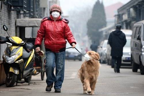 중국 베이징의 대기오염이 갈수록 심각해지면서 베이징에 있는 애견들도 스모그에 몸살을 앓고 있다. 중국 영문 글로벌타임스는 최근 베이징에서 반려동물을 키우고 있는 견주들이 애견용 황사마스크, 미세먼지 저항력을 높이는 사료 등 스모그로 고통받고 있는 애견들을 위해 다양한 방법을 강구하고 있다고 보도했다.
