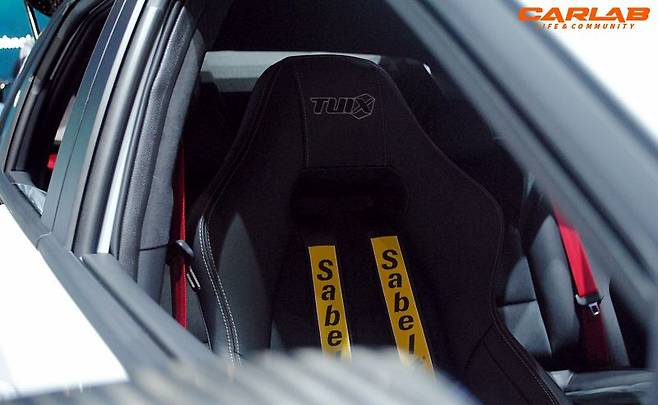 모터스포츠에 출전하기 위해 KARA(대한자동차경주협회) 규격에 맞도록 튜닝한 점이 인상적입니다. 레이싱용 D컷 휠과 모니터, 레이싱 버킷 시트와 6점식 안전벨트, 롤케이지까지 장착했군요.