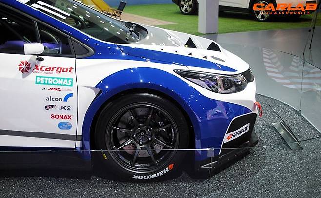 아반떼 스포츠 튜익스 버전도 함께 전시됐습니다. i30 튜익스 컨셉트보다는 훨씬 현실적인 튜닝카입니다. i30 튜익스 컨셉트와는 다르게 실내 튜닝에 초점을 맞춘 것이 특징입니다.